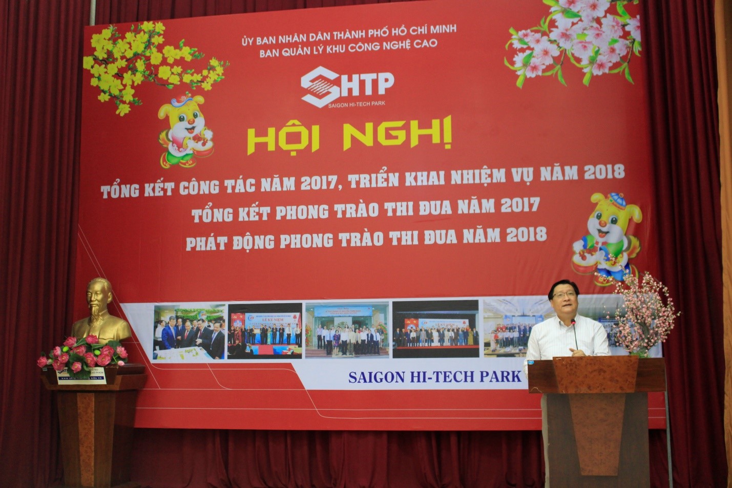 Ngày 02/02/2018, Ban Quản lý Khu Công nghệ cao đã tổ chức Hội nghị Tổng kết công tác năm 2017, triển khai chương trình công tác năm 2018 và Tổng kết phong trào thi đua, công tác khen thưởng năm 2017, phát động phong trào thi đua năm 2018.